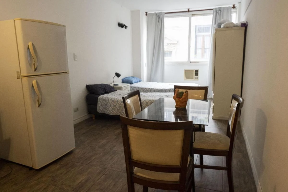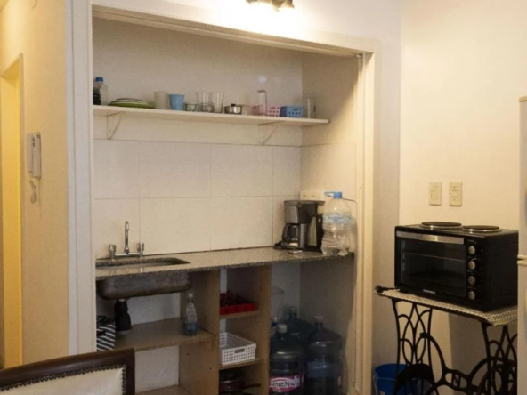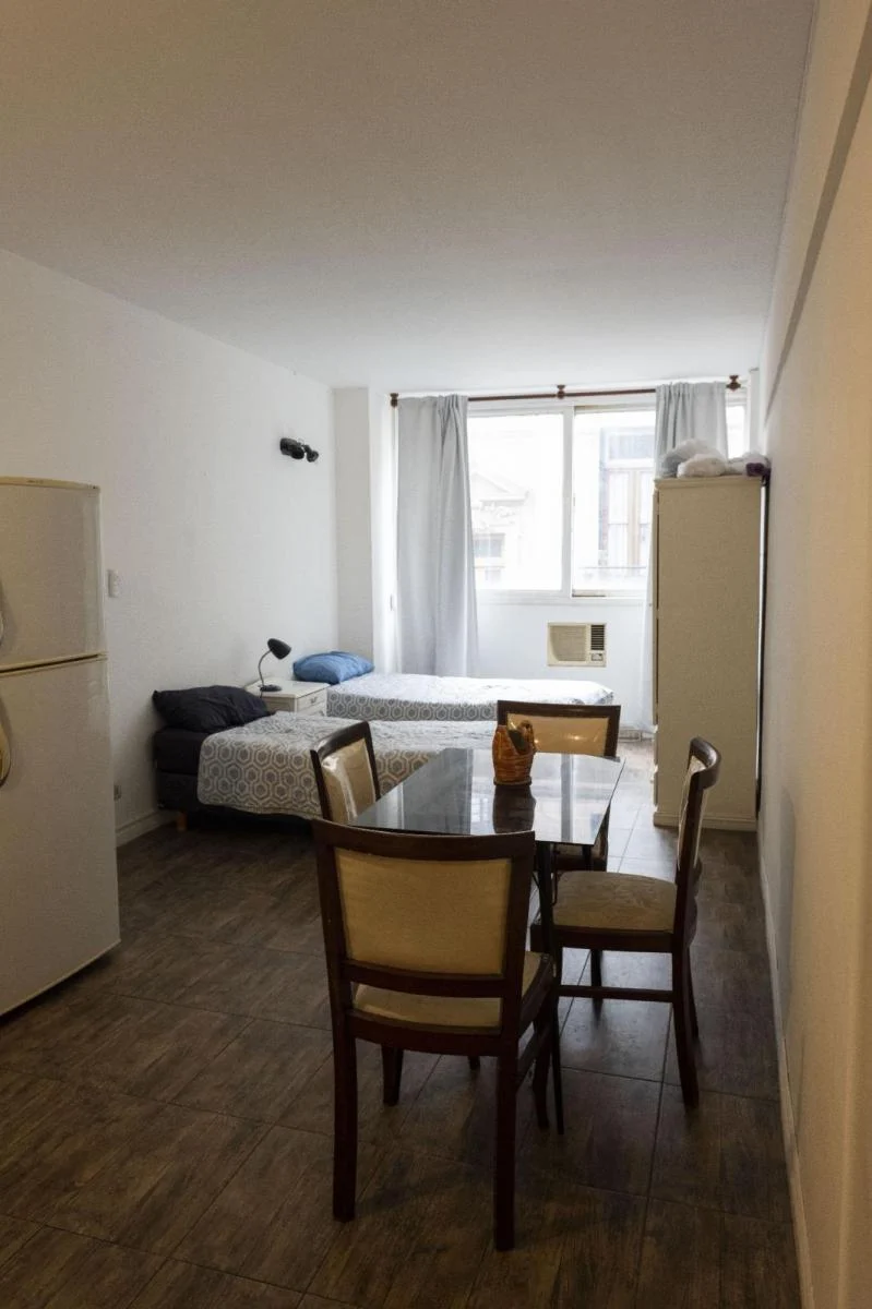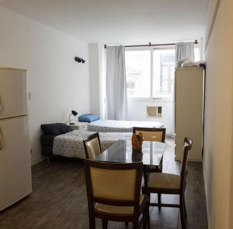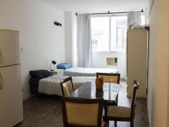 Se trata de un departamento luminoso al frente,reciclado, ceramicos nuevos en los pisos, baño con bañera, pequeña cocina, amoblado y con equipo de aire acondicionado.
